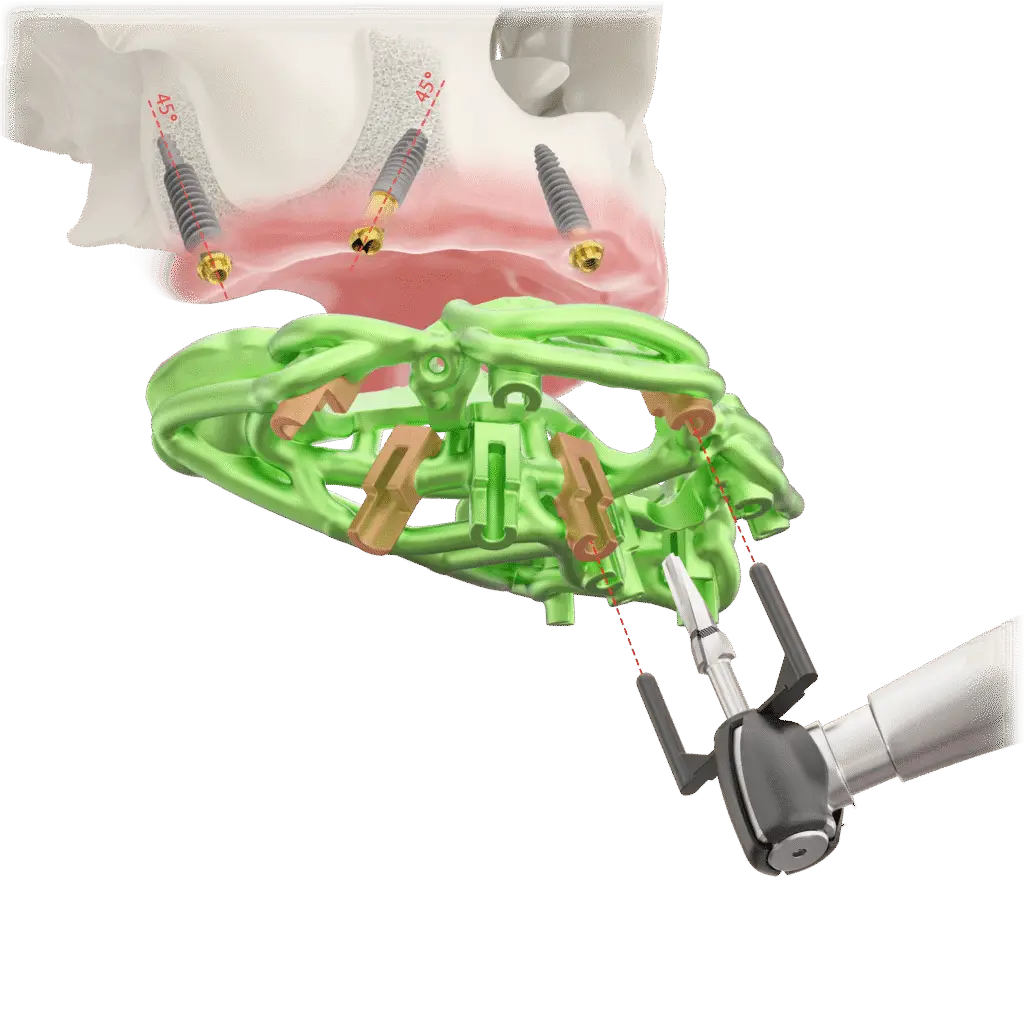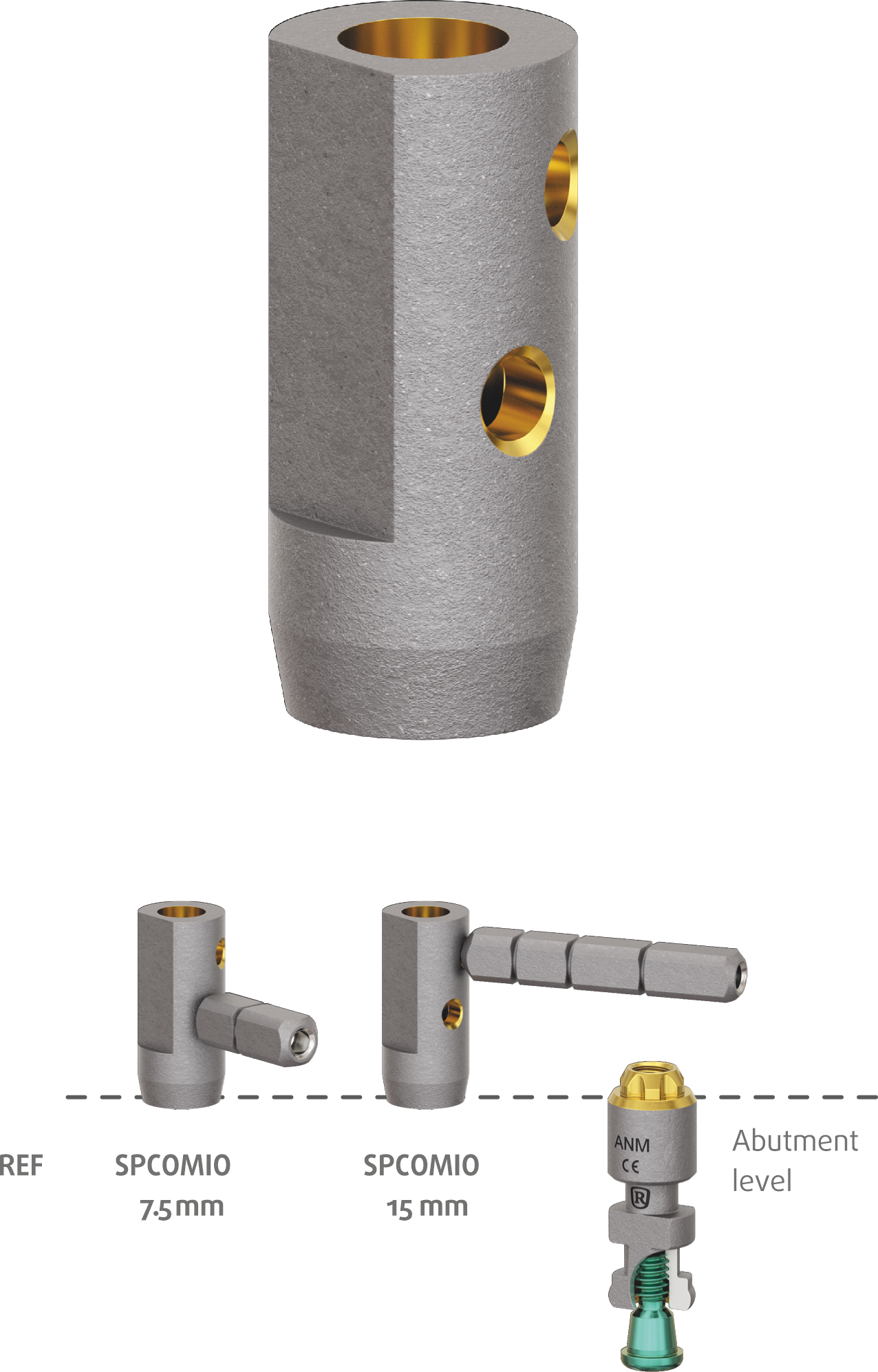 • Guide special design allows tools to be used and implants to be placed in extremely small mouth openings (at least 25 mm space saving) as well as in reduced interdental spaces.