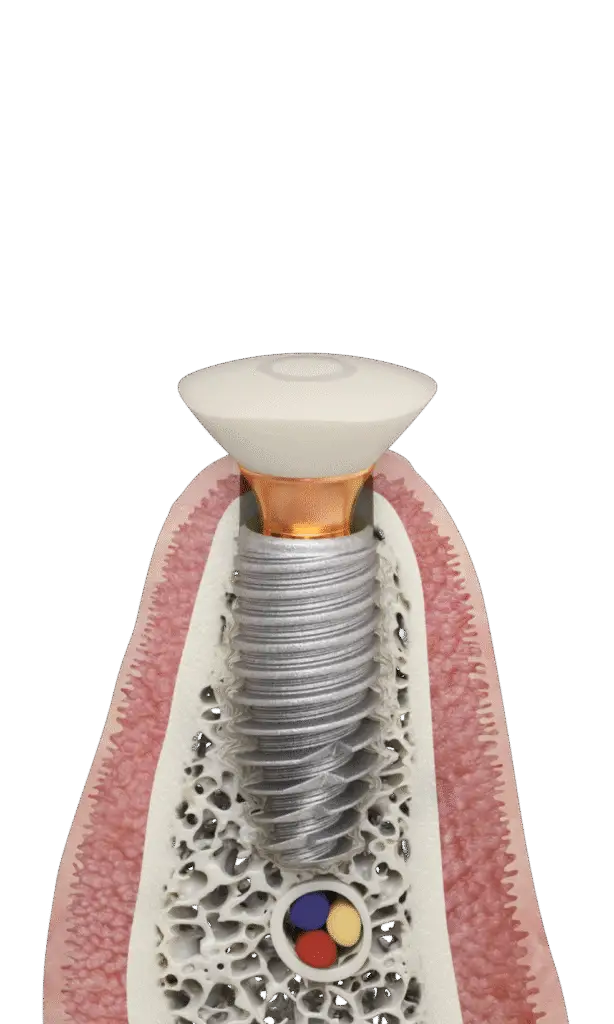ZeroBoneLoss® abutments utilize precise implant-abutment 5 degree conical connections and platform switching to control bacterial leakage, minimize micromovement, and prevent crestal bone loss.